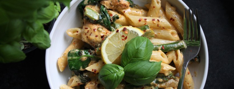 Hellooo may I introduce you to creamy pasta perfection? I try to maintain diversity in my recipes: partly so that at any one time there will be something to please everyone at the top of my archives but also because I love trying out new techniques, ingredients and cuisines. I am aware, however, that I … Continue reading Lemon and Mascarpone Penne with Basil Chicken and Asparagus